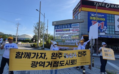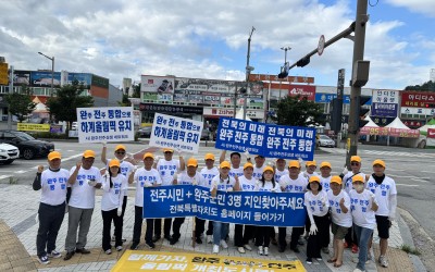 완주-전주 통합 염원하는 시민들 ‘함께 가자!’ 아침 출근길 캠페인 전개…통합 열망과 의지 확산