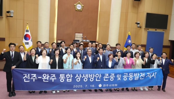 최주만 의원은 결의안을 통해 "전주·완주는 이미 생활·경제·교육·문화 전반에 걸쳐 하나의 공동체로 기능하고 있으나 행정 구역 분리로 인해 정책 단절, 예산 낭비, 주민 불편 등의 비효율이 지속되고 있다"며 "전주·완주 통합은 단지 행정 구역 병합에 그치지 않는다. 두 지역 통합은 지방 소멸을 극복하고 자치·분권을 실현하는 새로운 시대의 전환점"이라고 강조했다.
