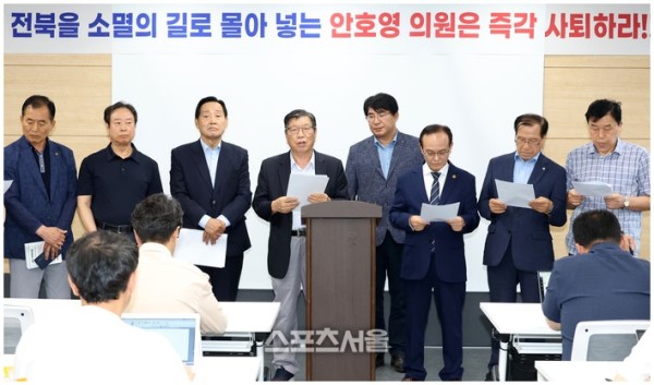이어 “전북도민의 염원인 완주·전주통합을 깨 부숴버린 것”이라며 “완주·전주통합을 염원하는 전북특별자치 도민과 전주시민 그리고 완주군민은, 안호영 의원에게 엄중한 정치적인 책임을 묻고자 한다” 고 주장했다.