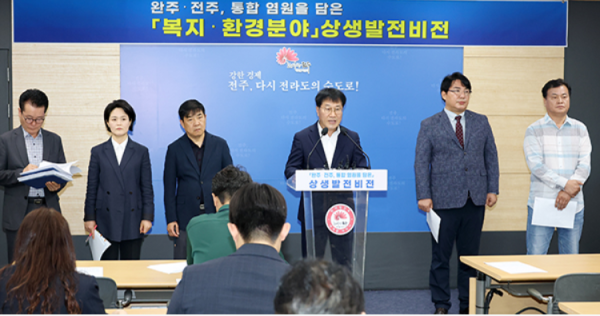 시와 완주·전주 상생발전 전주시민협의위원회(위원장 박진상)는 22일 시청 브리핑룸에서 진교훈 복지환경국장을 비롯한 담당 분야 간부공무원과 박진상 위원장 등이 참석한 가운데 ‘완주-전주 통합 염원을 담은 상생발전 비전’ 브리핑을 통해 복지분야 상생발전 비전을 제시했다.