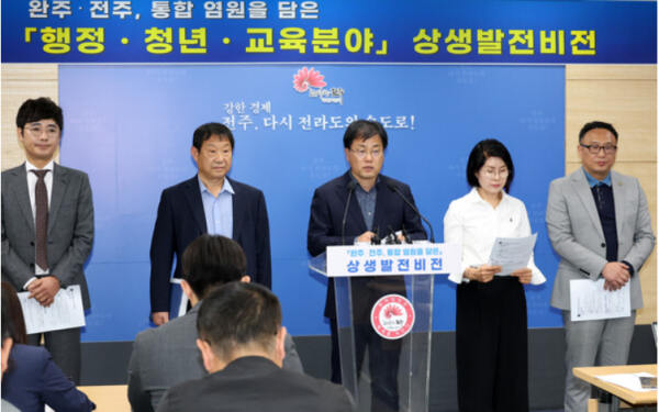전주시가 완주·전주 통합을 염원하며 행정·교육·청년 분야에서 두 지역의 동반성장을 위한 상생발전 방안을 내놓았다.