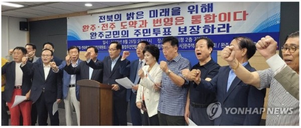 완주·전주 통합 찬성단체들 "완주군민의 주민 투표권 보장하라"